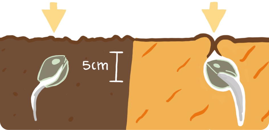 - Home for the seed: Make a 5cm deep by 2cm wide hole for each seed we are planting.